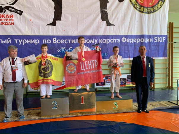 Марков Р., ученик 3 класса, занял 1-ое место в кумитэ, среди мальчиков 8-9 лет 4-6 кю.